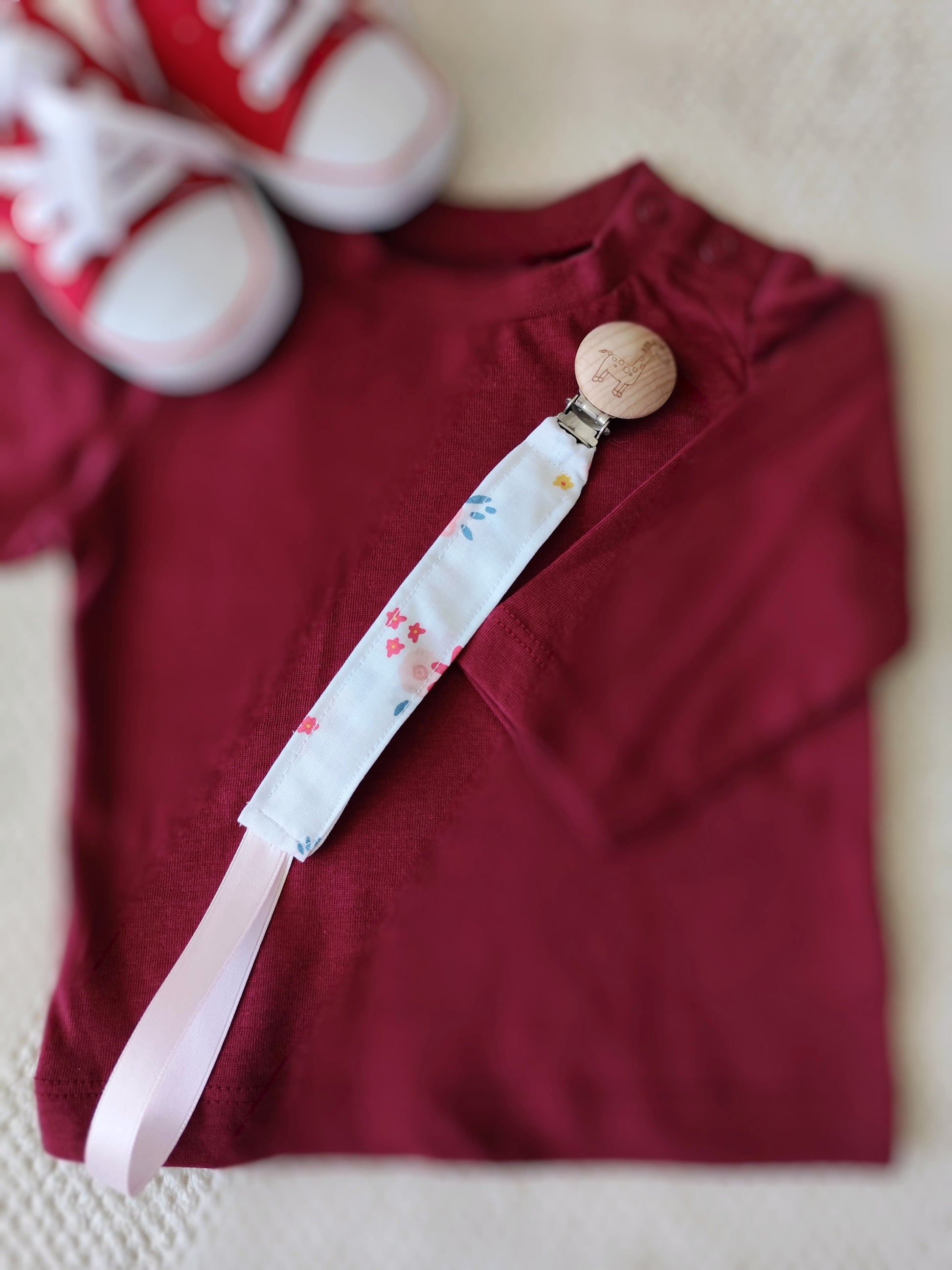 Fini de perdre la tétine ! Grâce à son clip en bois, l'attache-tétine peut être fixée partout où vous le souhaitez : au bavoir ou directement sur les vêtements de votre bébé.
