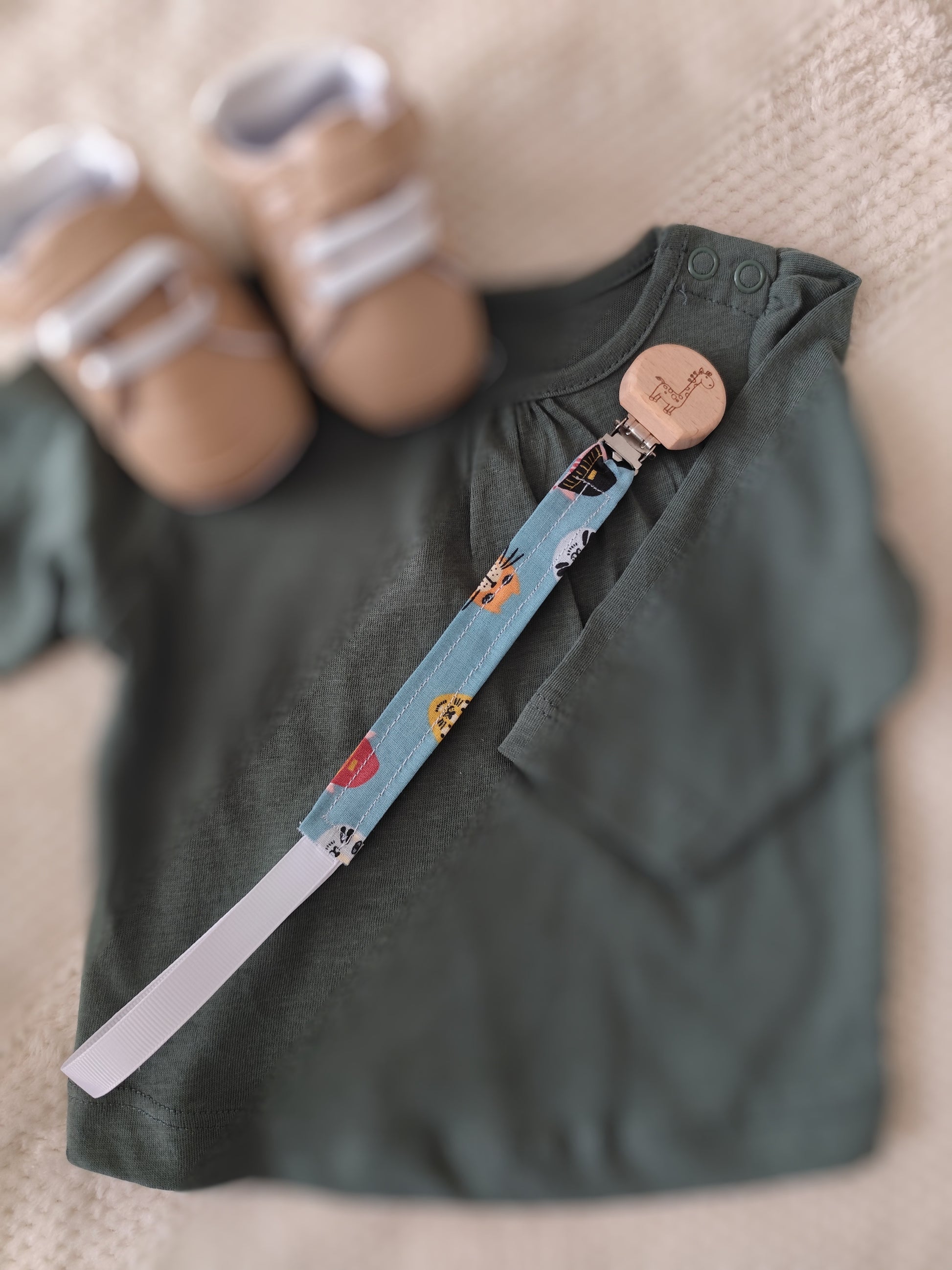Fini de perdre la tétine ! Grâce à son clip en bois, l'attache-tétine peut être fixé partout où vous le souhaitez : au bavoir ou directement sur les vêtements de votre bébé.