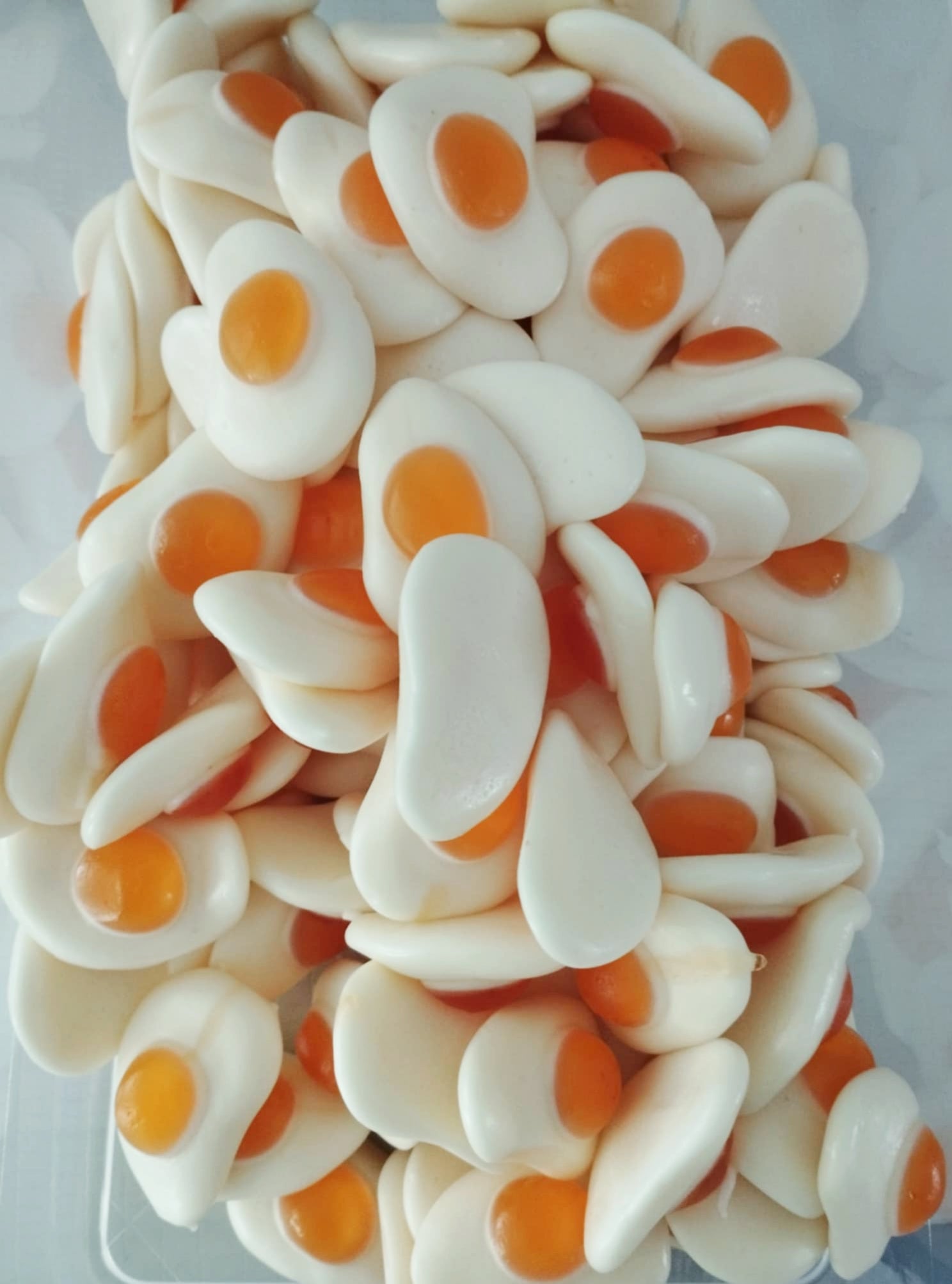 Sirop de glucose, eau, sucre, amidon, gélatine de bœuf, acidifiant : acide citrique, régulateur d'acidité : citrate de sodium, agent d'enrobage : cire de caranuba, colorants : E100, E120.