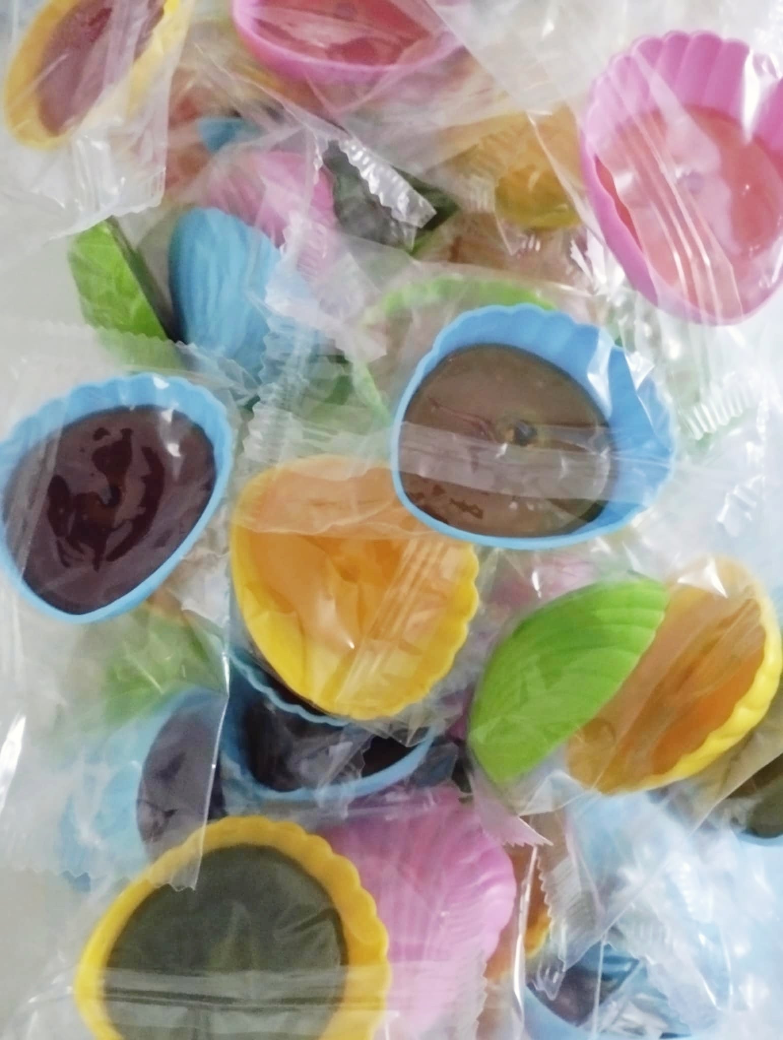 Confiserie fantaisie. Coquillages en plastique remplis de sucre cuit et parfumé emballés individuellement. Ne convient pas aux enfants de moins de 3 ans.