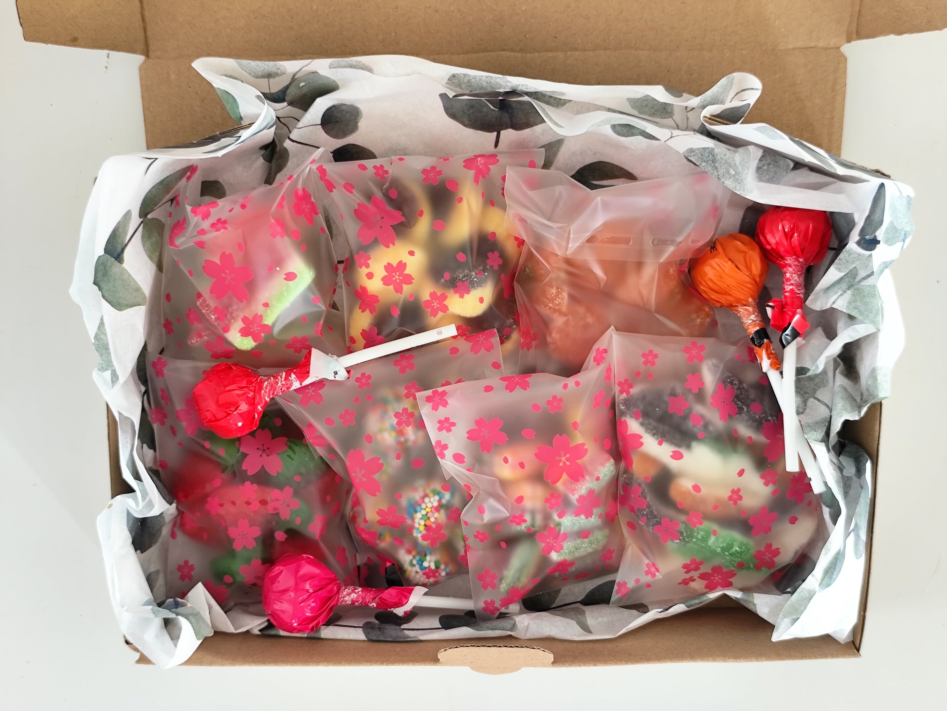 Mélange de bonbons. Vendu à l'unité. Box surprise de 350g de bonbons et 4 sucettes