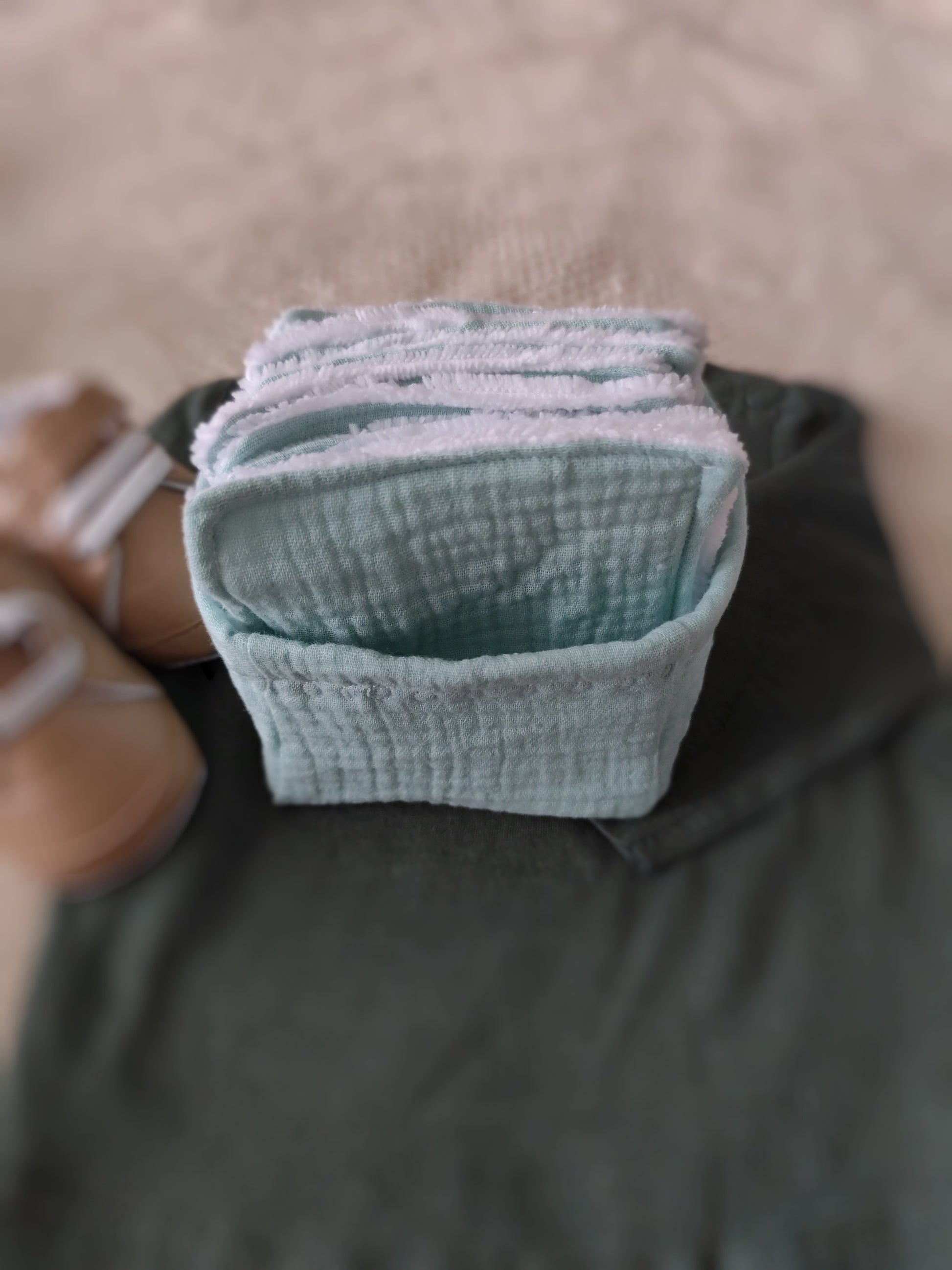 Les lingettes lavables possèdent une face en éponge de bambou très douce et absorbante et une en coton. Lot de 10 lingettes avec son panier assorti. Très pratiques et économiques les lingettes lavables remplacent parfaitement les cotons jetables. Idéal pour nettoyer les fesses de bébé, débarbouiller sa frimousse ou encore pour se démaquiller tout en douceur. Écologique et responsable.
